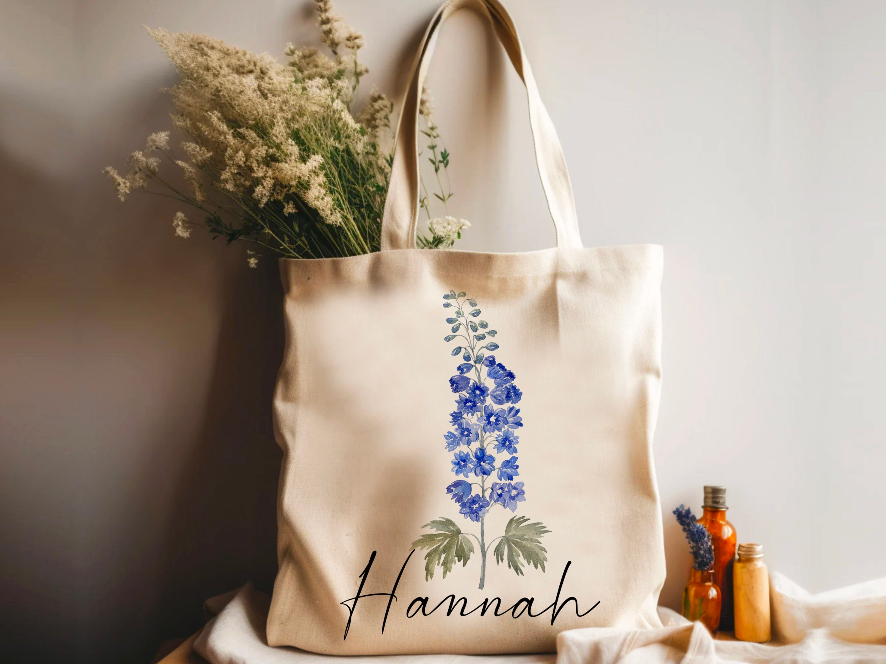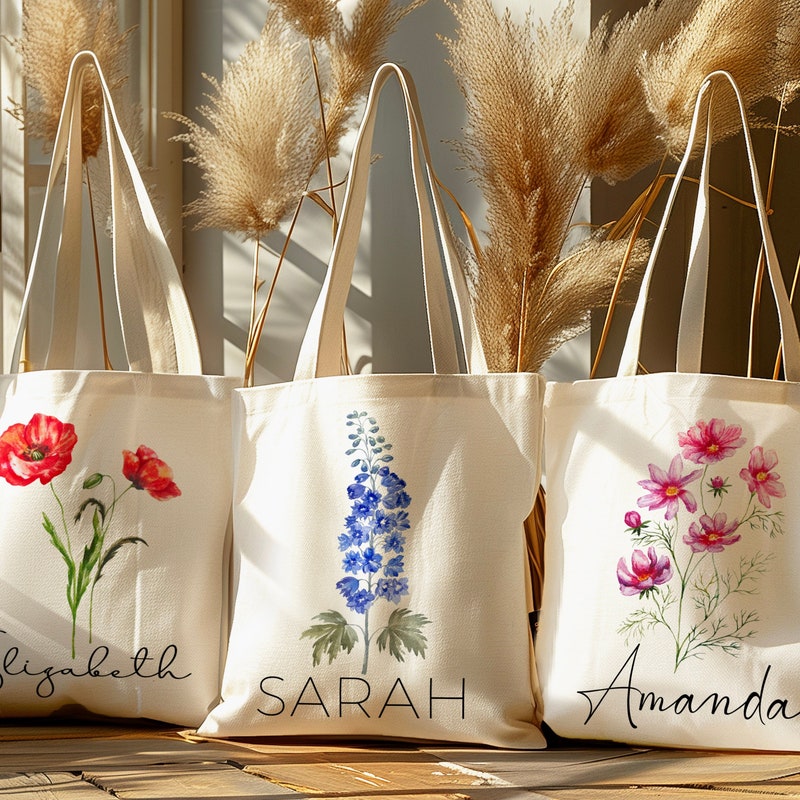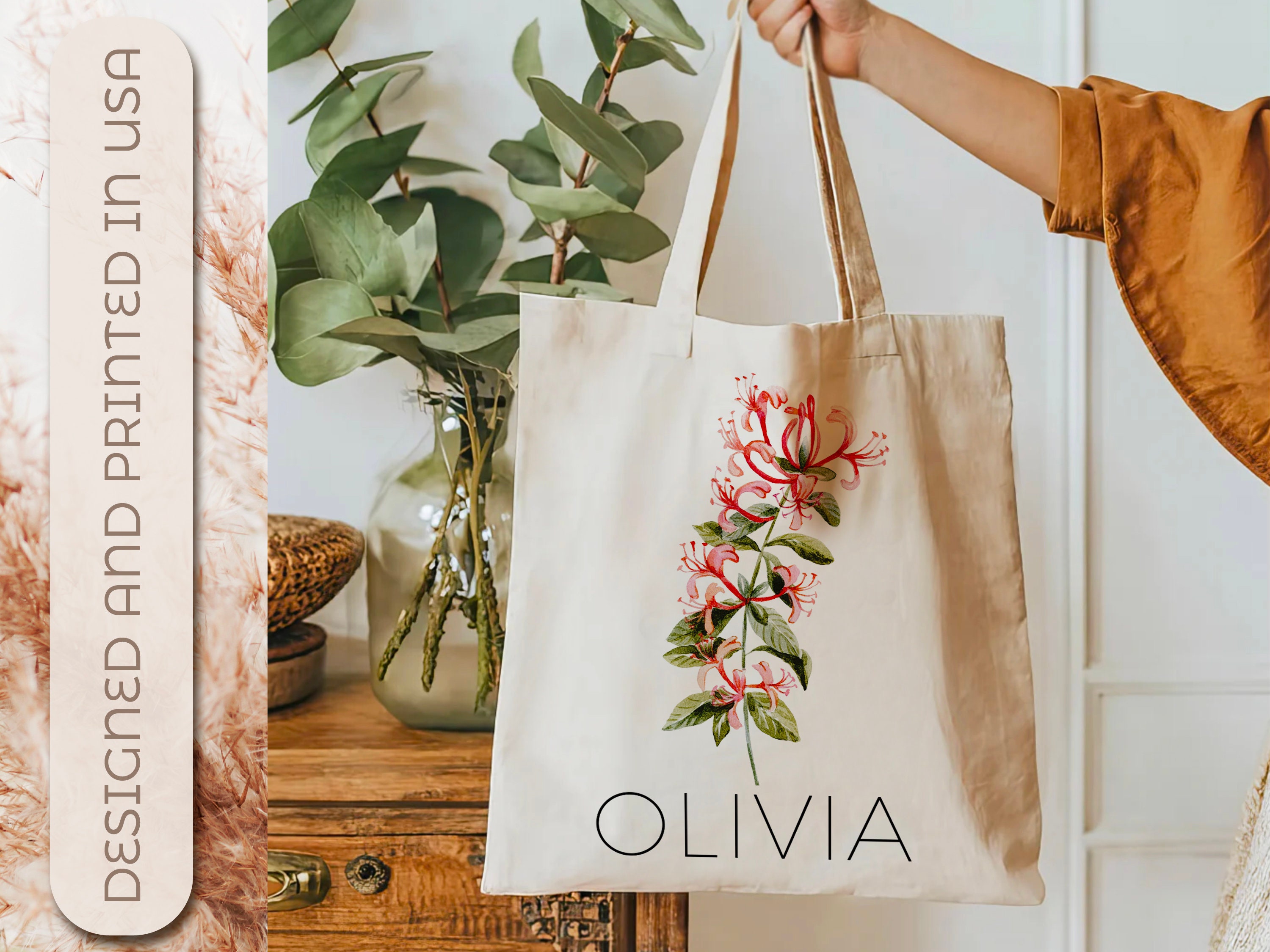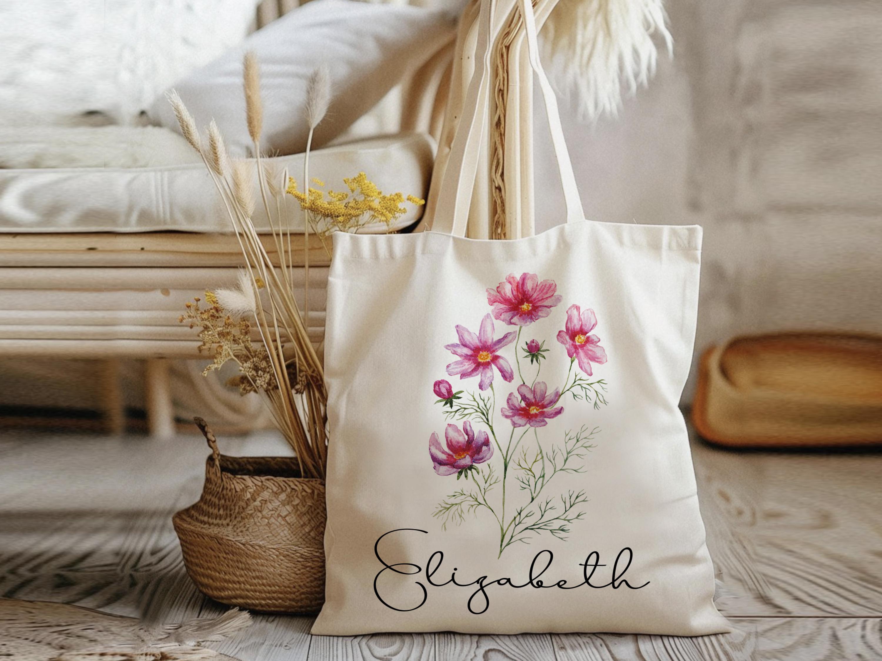 Birth Flower Tote Bag for Woman, Personalized Canvas Tote Bag for Her, Bachelorette Bridesmaid Gifts, Custom Birth Month Flower Gift for Her