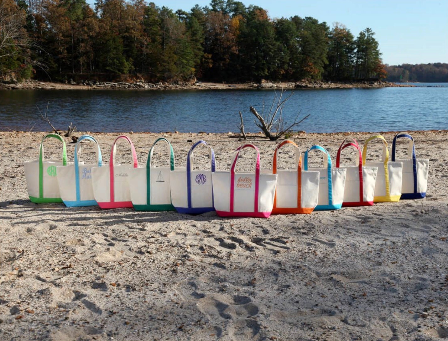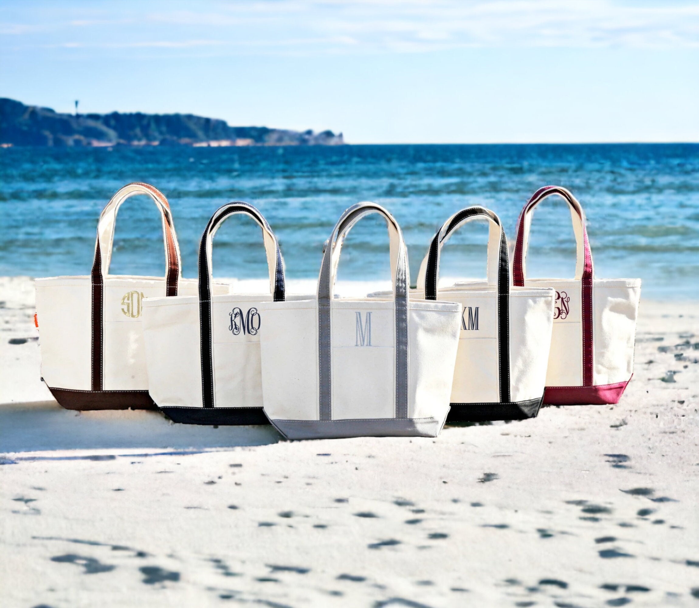 These canvas monogrammed tote bags / classic totes with zipper are exactly what you are looking for for this years tote! This personalized / embroidered tote bag and bridesmaid bag is your go to summer bag whether it be for the boat, beach, or day at the park! Embroider with a name or monogram of your choice!