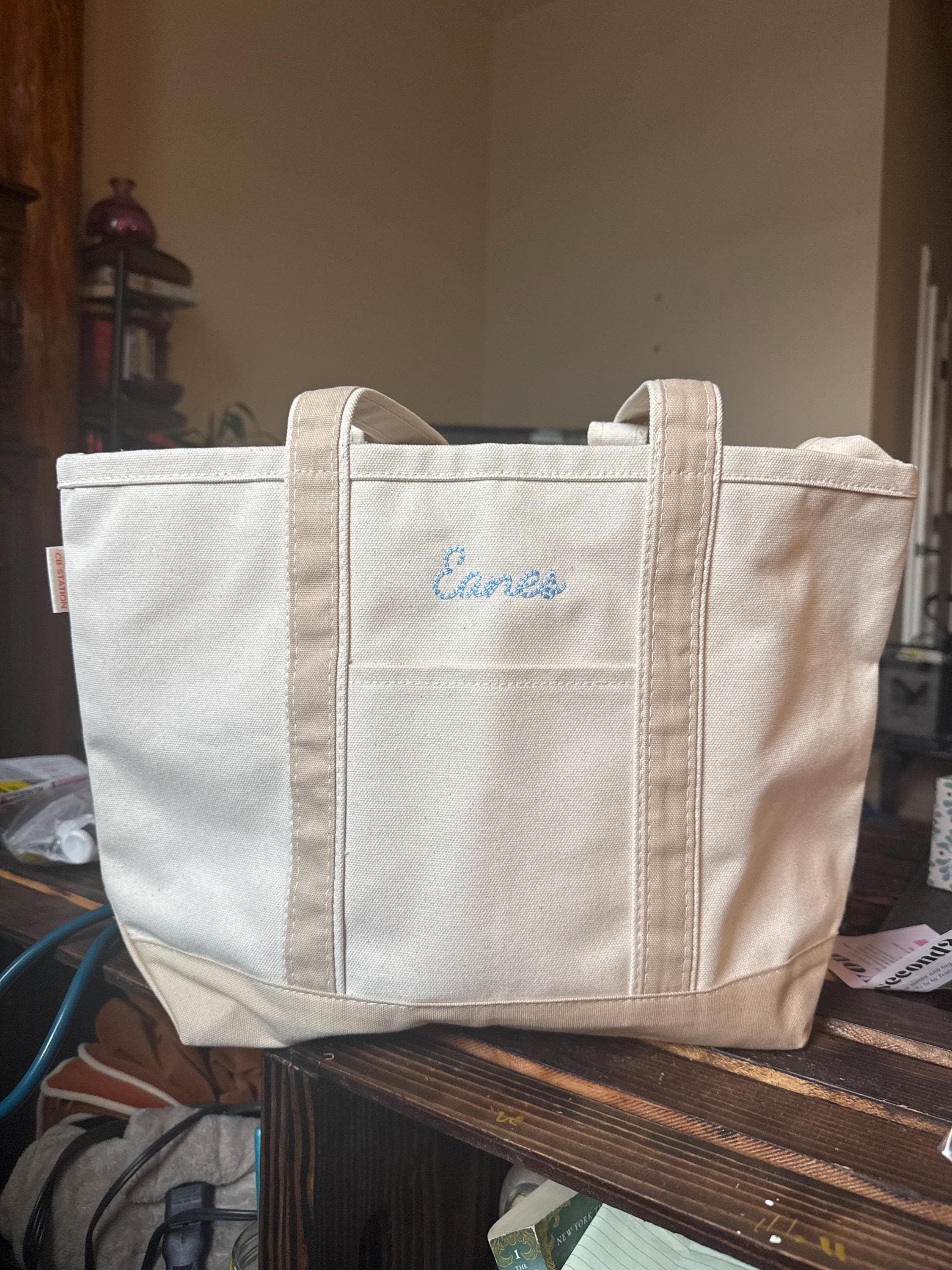 Custom Canvas Sailboat Tote Bag with Zipper, Custom Text Tote Bag, Bridesmaid Gift, Embroidered Tote, Bridal Party Bag, Bachelorette Gift