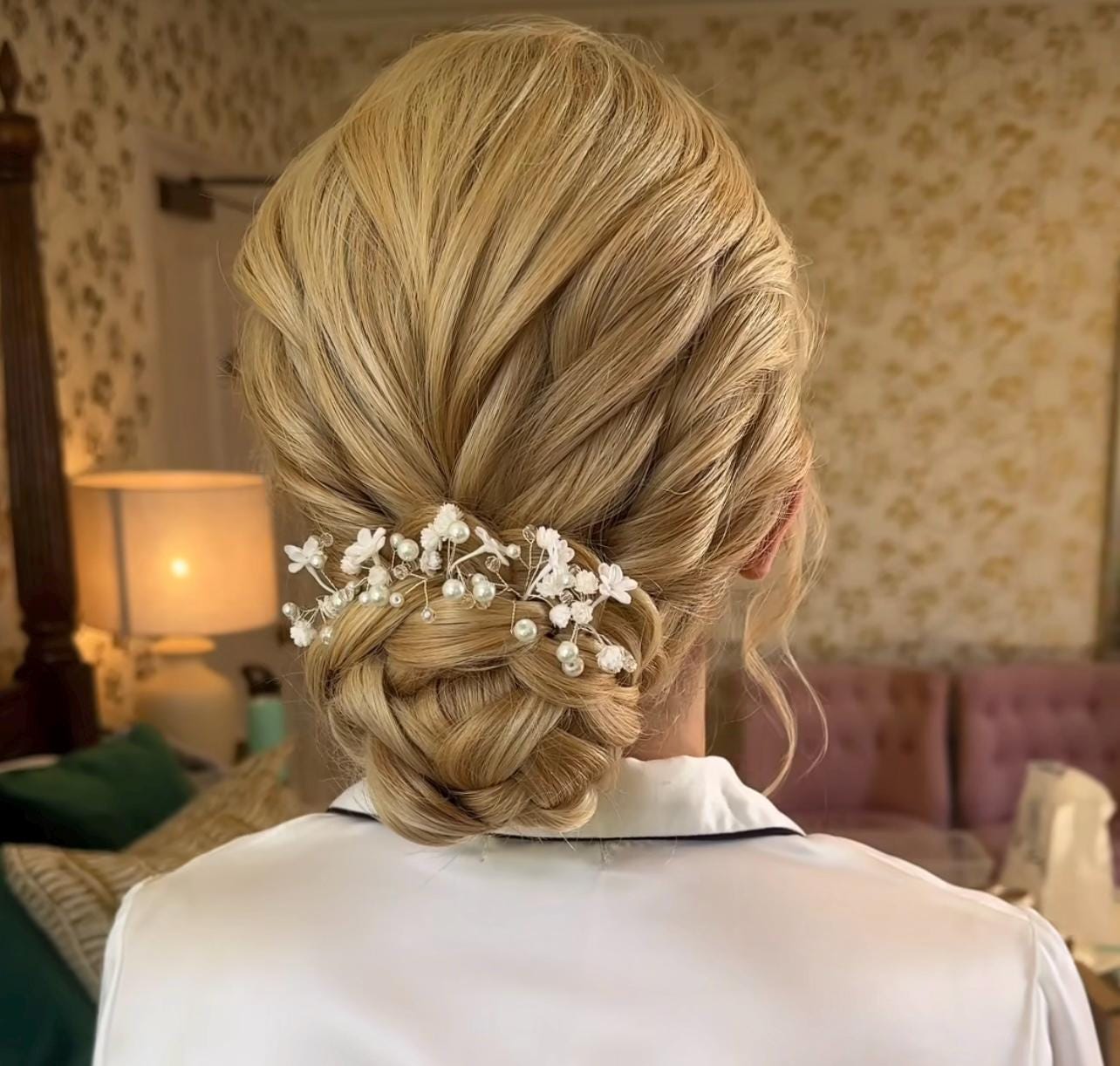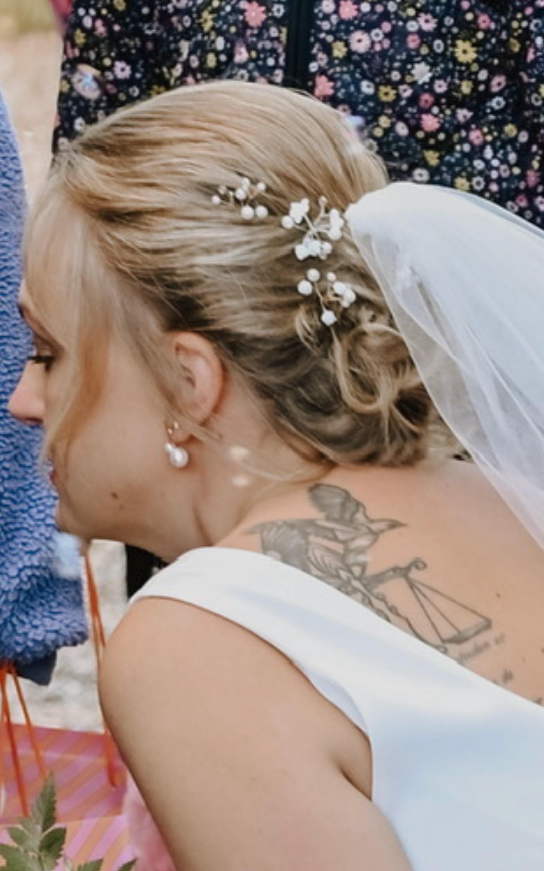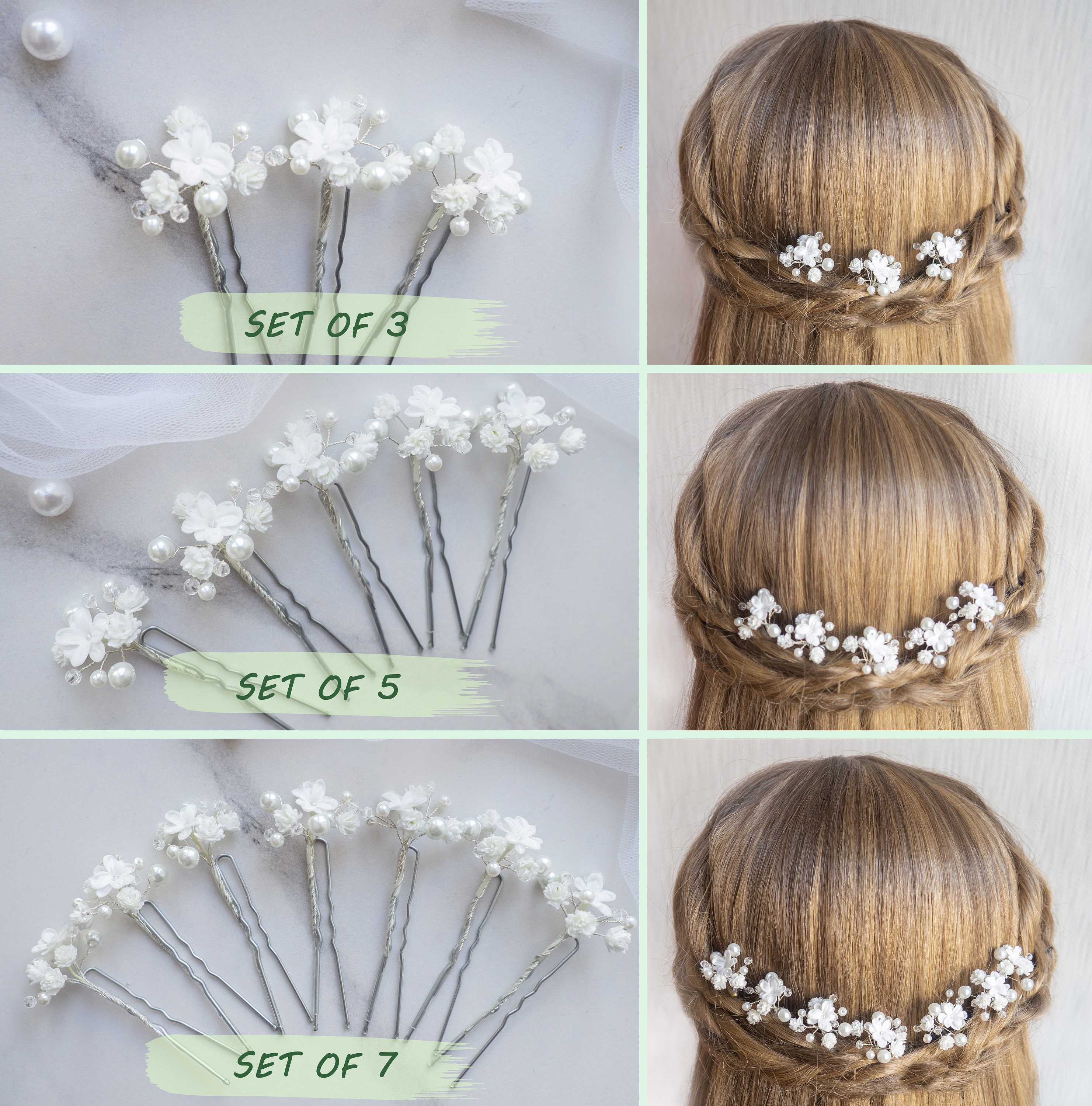 Wedding hair piece with babys breath hair flowers and pearl hair pins are compliment many different styles. These tiny flower hair pins with real touch flowers look amazing in any hair style.