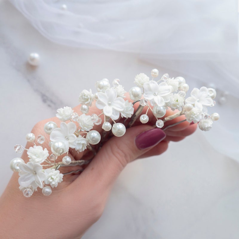 Floral bridal hair piece is the perfect touch for your wedding day, or special occasion (bridesmaid hair pin, wedding hair pins, pearl hair clip, decorative hair pins).