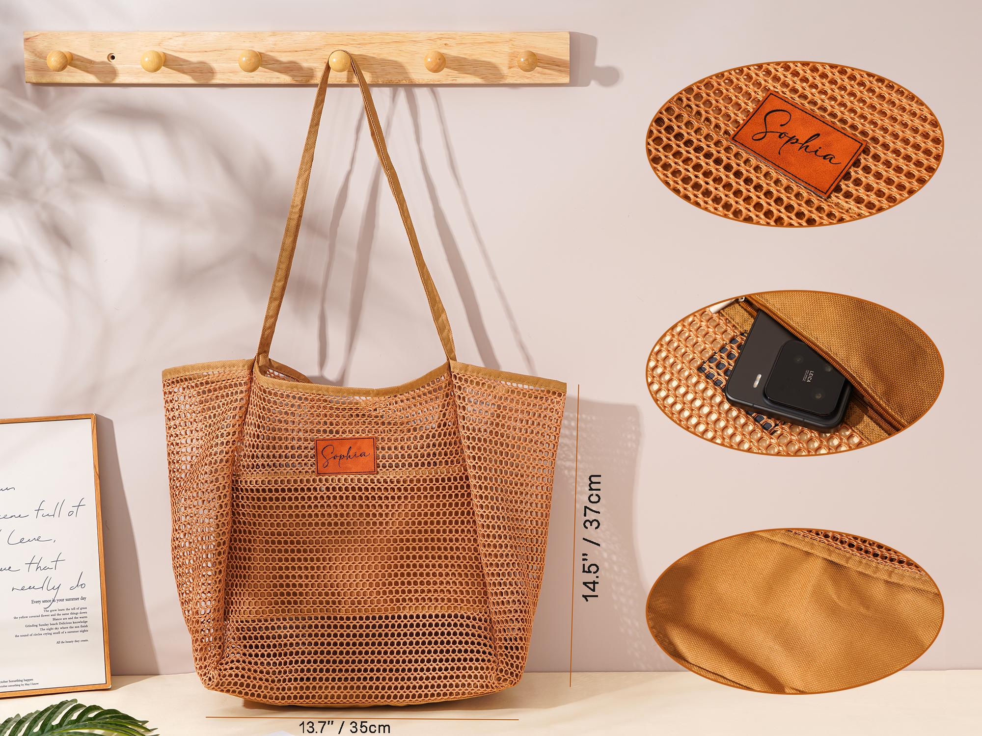 Each personalized beach tote bag is attention to detail for a beautiful natural look to match any style,creating a beautiful and modern feel. Customize your bag with a leather patch on the front. Choose names or initials to make your bag truly unique.