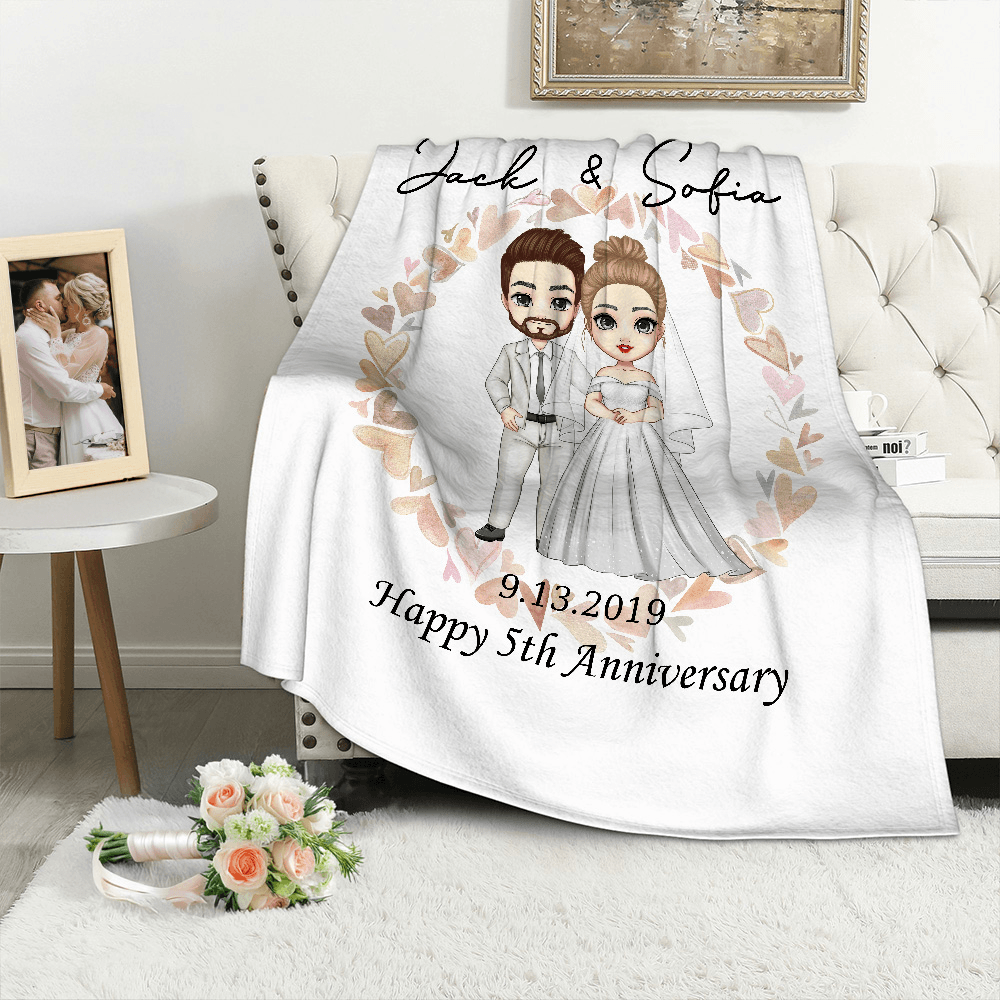 | Style | Personalized Cartoon Bride and Bridegroom Soft Throw Blanket |