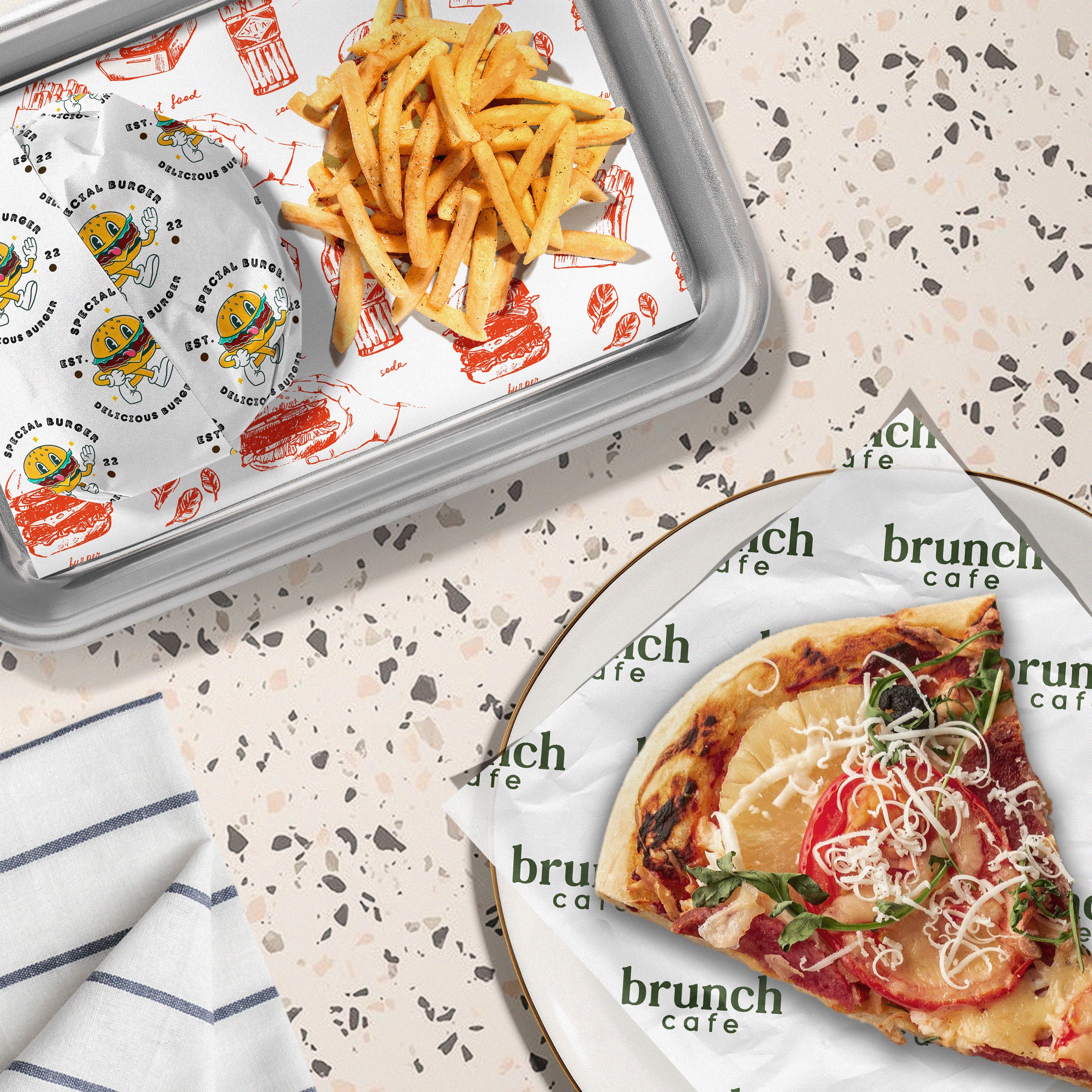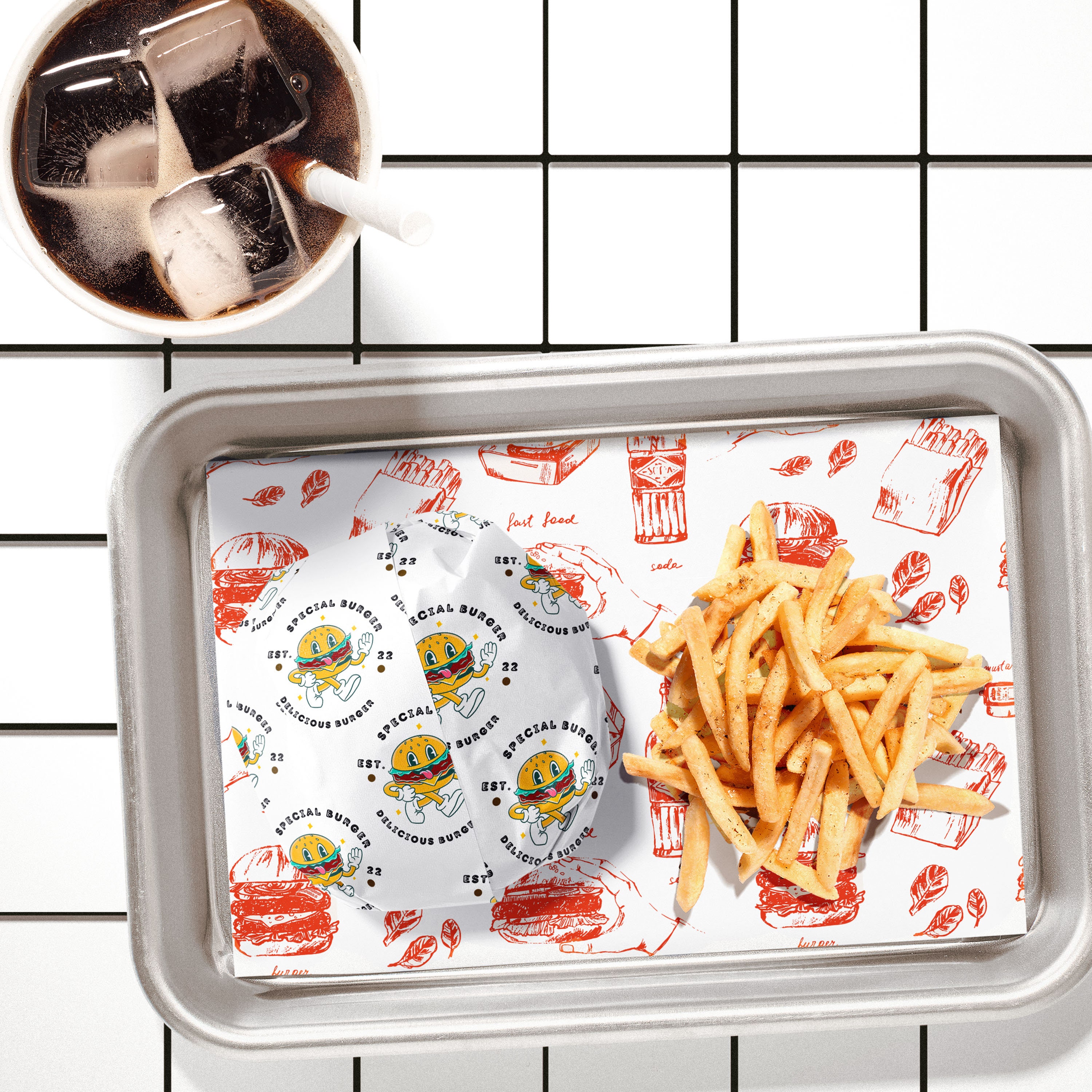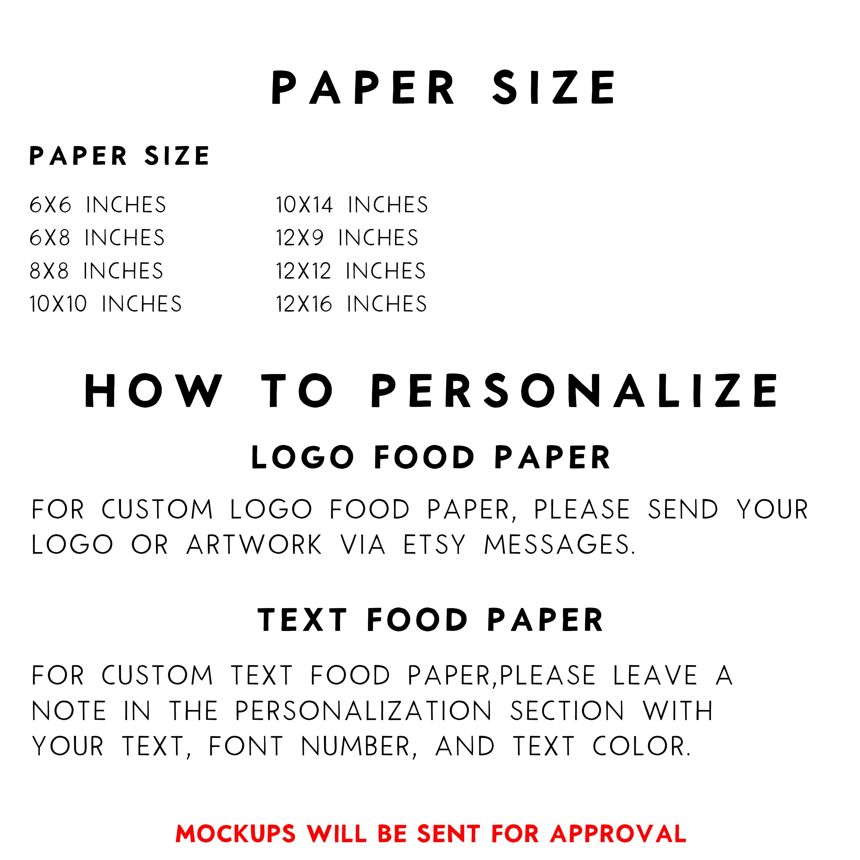 Looking for a way to add a personal touch to your food presentations? Look no further! Our custom food-safe paper is the ideal choice for wrapping sandwiches, showcasing party platters, displaying freshly baked goods, or lining food trays – you name it! Whether you're running a restaurant, food truck, hosting weddings, birthdays, or any other special events, our food wrap sheets are crafted from top-notch, greaseproof paper, to keep your delicious dishes fresh and tasty.