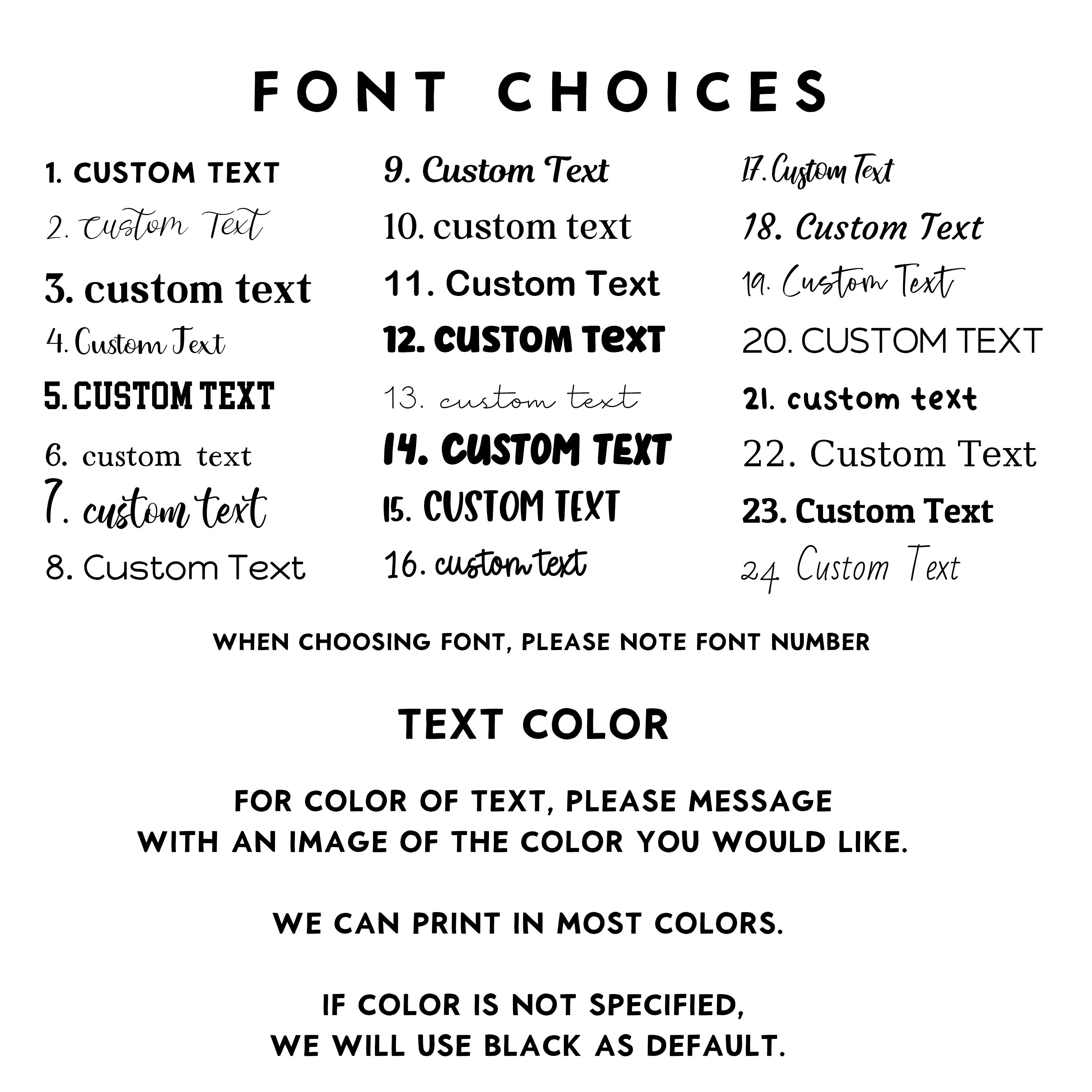 Please leave the text, font number, and color in the personalization section.