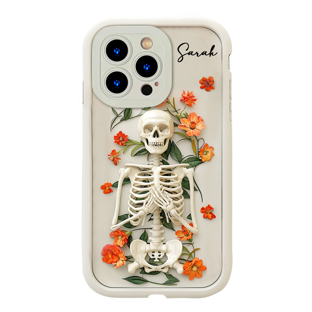Personalized Name Skeleton with Orange Flowers Phone Case, iPhone, Pixel, Samsung