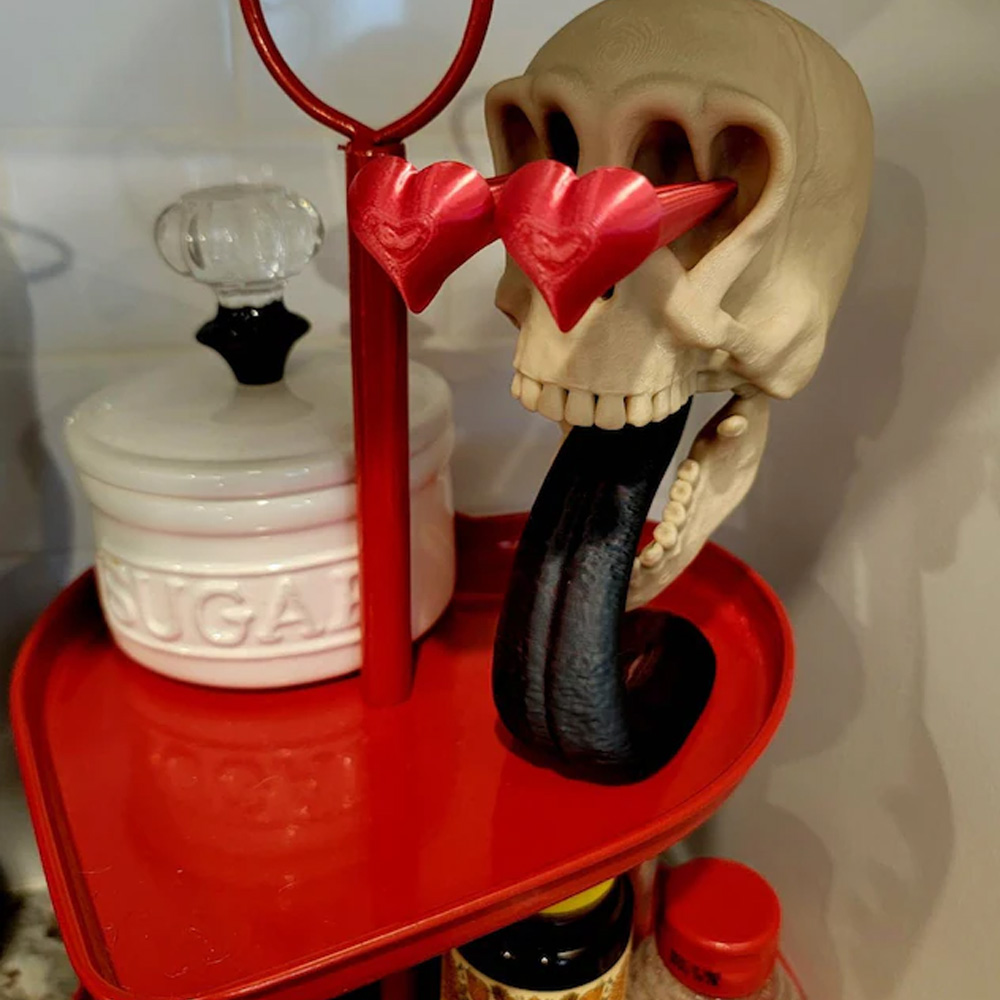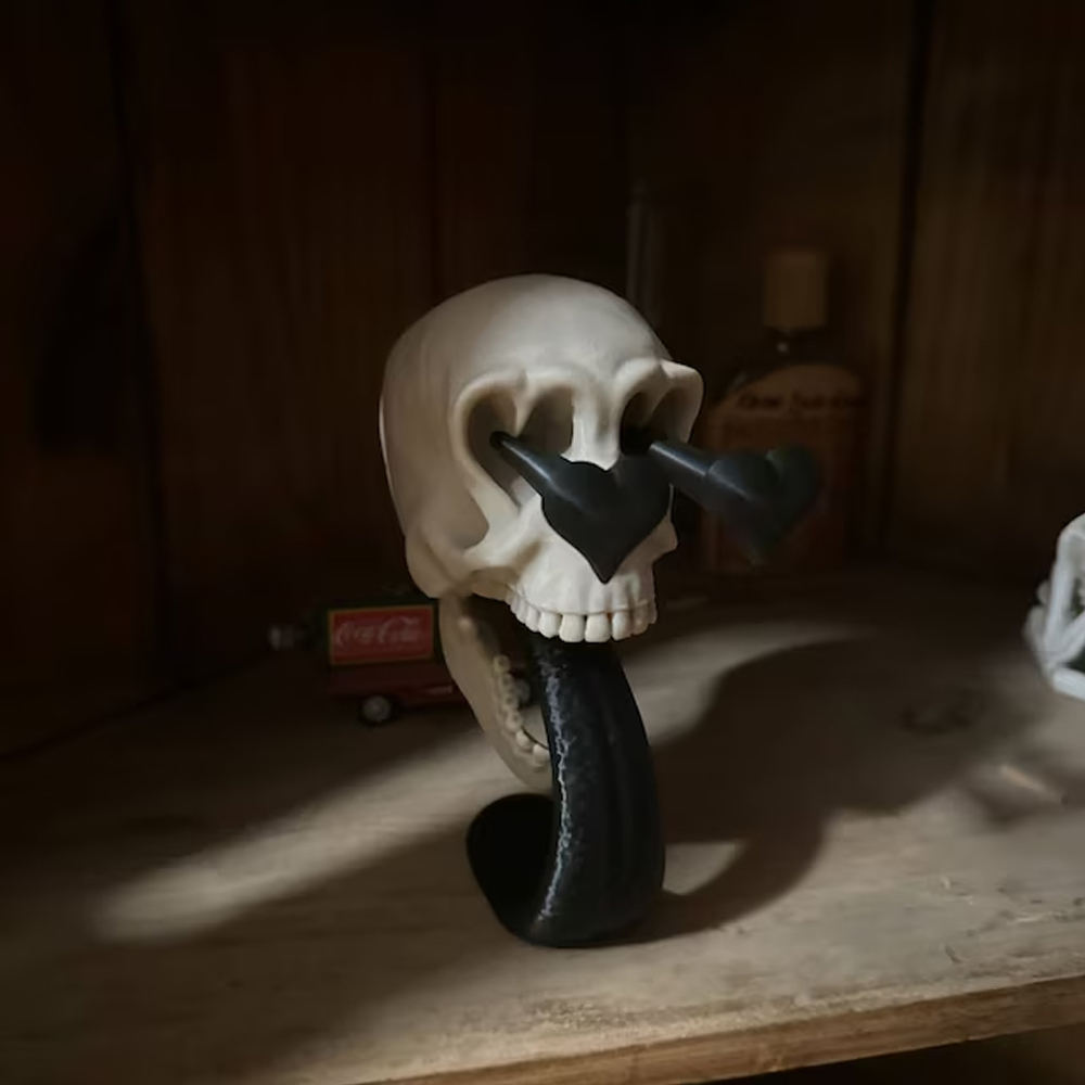 Embrace your dark romantic side with this captivating Skull in Love ornament. Crafted with meticulous detail, this gothic-inspired skull features a delicate heart design that adds a touch of elegance.