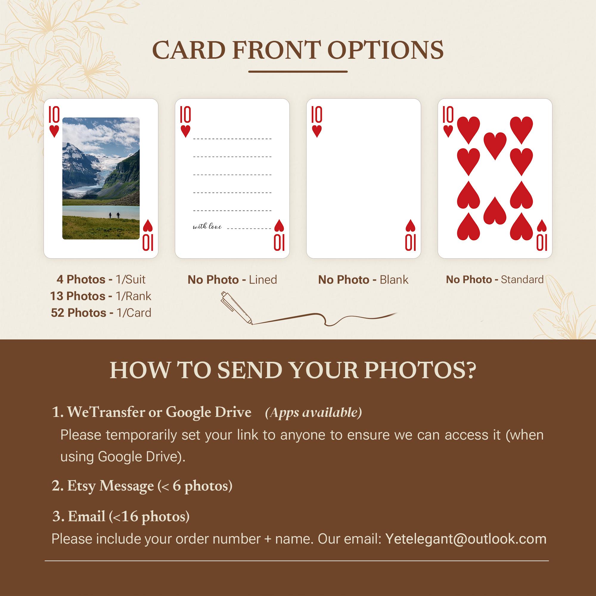 Transform your deck of cards into a personalized photo album! Each card can feature your favorite photos