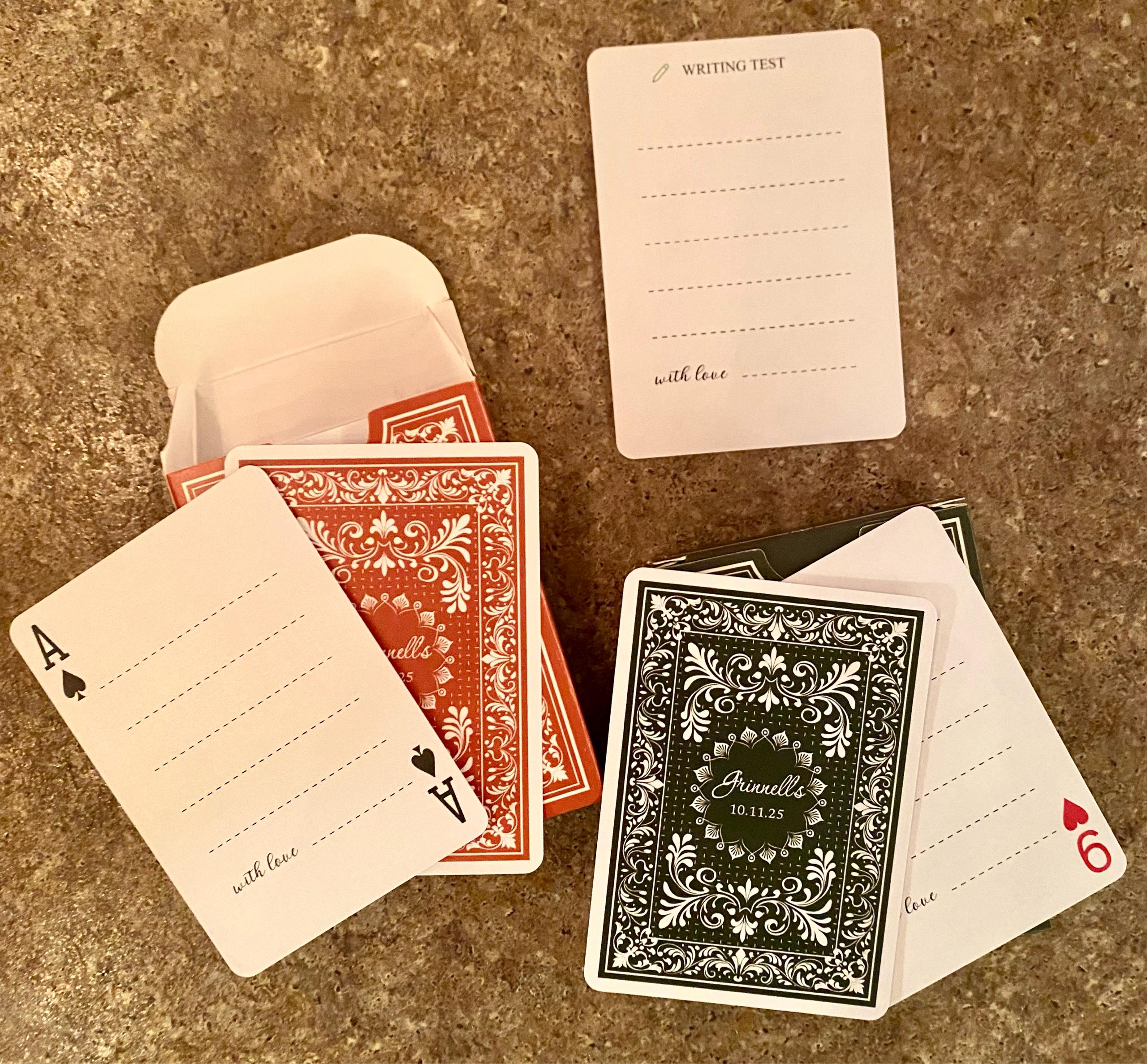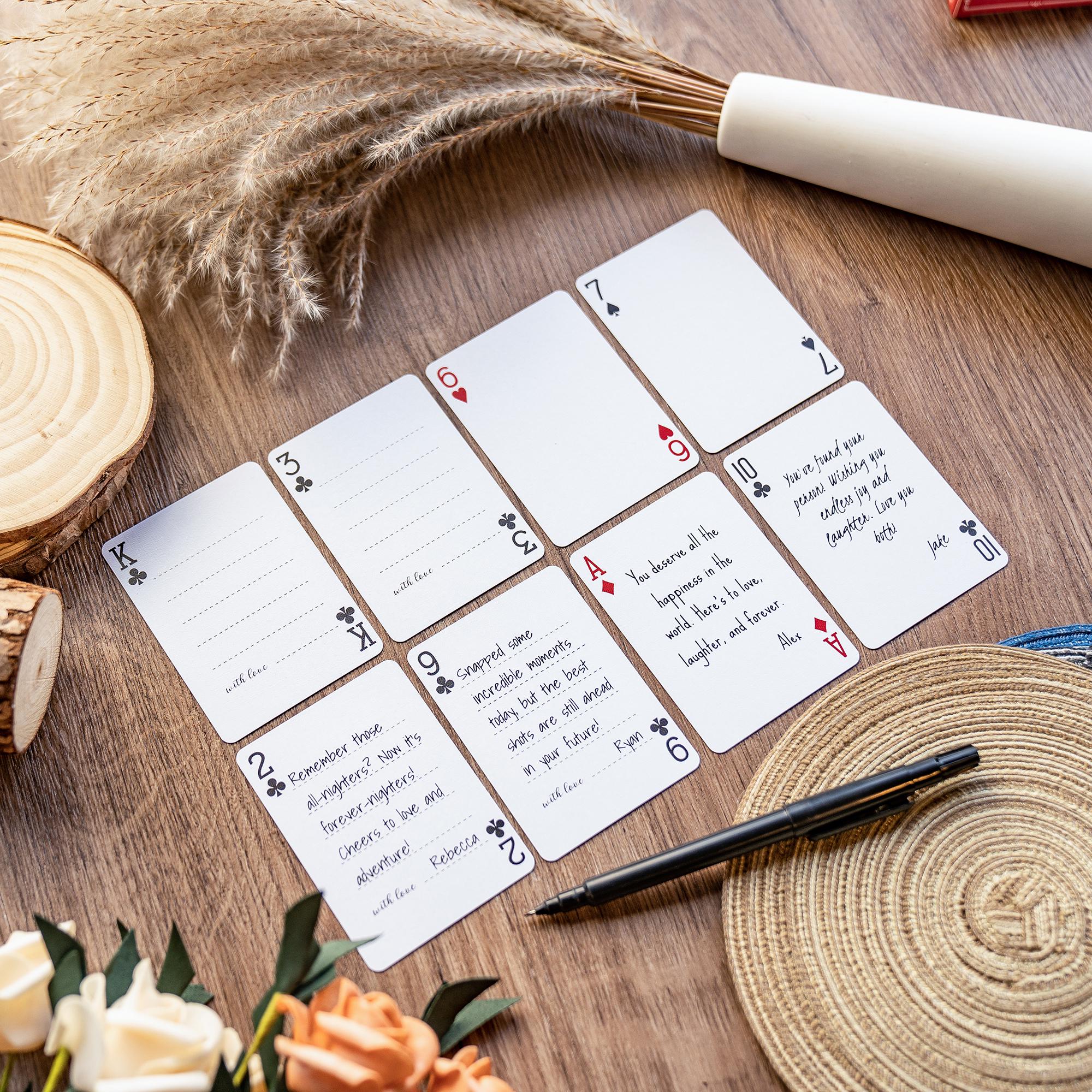 Looking for a unique way to preserve memories or surprise loved ones? Our custom playing cards are ideal for crafting unforgettable keepsakes! Whether you're creating a card deck with photos, a unique wedding guest book, or thoughtful bridal shower gifts, these decks help you celebrate special moments in style.