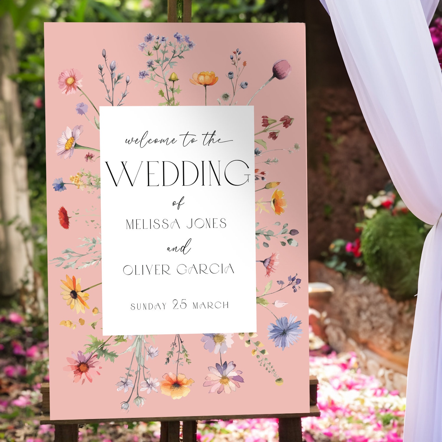 Enhance the beauty of your special day with our Wildflowers Wedding Sign—a stunning addition to your wedding decor that embodies the charm of nature. This Floral Wedding Welcome Sign is designed to greet your guests with a warm and inviting message, setting the perfect tone for your celebration.